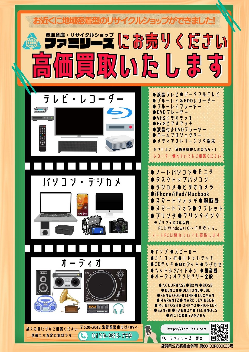 滋賀県栗東市で買取・中古品販売・通販を行うリサイクルショップ「ファミリーズ」